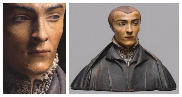 1. В эпоху Возрождения в Италии, а затем и Северной Европе, в моду вошли расписанные воском и минеральными красками рельефные медали и портретные бюсты из терракоты. Выглядели они очень реалистично. Примерно так, как созданный немецким скульптором Конрадом Мейтом терракотовый "Бюст молодого человека". Глаза, губы, кожа, родинка, кружево на воротничке. Кажется, что этот задумчивый юноша, имя которого так и осталось загадкой, может в любой момент прервать молчание и рассказать куда же он так выразительно смотрит последние пять сотен лет.